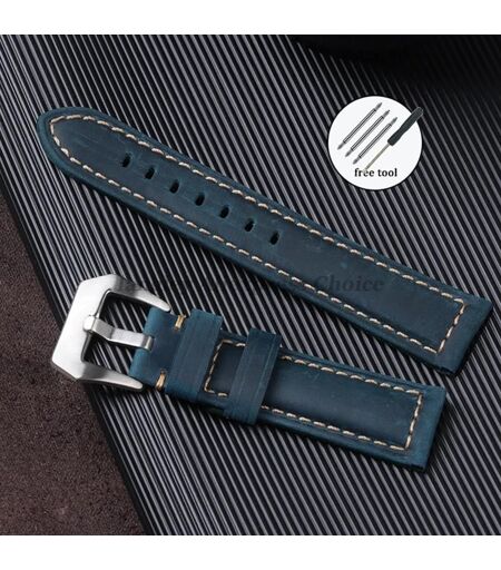 Kafol-Bracelet De Montre En Cuir Véritable Pour Hommes Et Femmes,Bracelet Panerai,Pam111,441/312,Cuir De Vachette De Cheval,Environnement 20mm,22mm,24mm,26mm Pour Mol,20mm,Blue