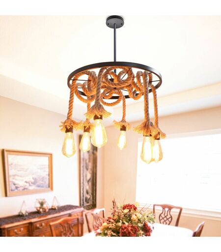 AXHUP Lustre Suspension Industrielle E27 Plafonnier Luminaire en Corde de Chanvre Noir 6 Lumières 2PCS
