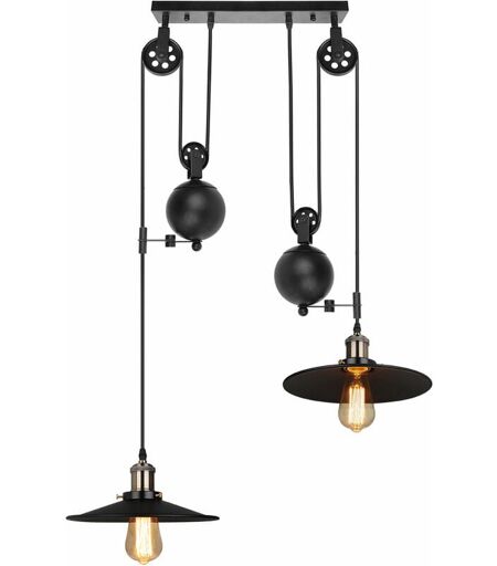 AXHUP Suspension Lustre à Poulie Plafonnier Lampe Suspension Vintage Industrielle Noir - 2 Douille