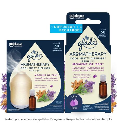 Glade® Aromatherapy - Diffuseur + 2 recharges MOMENT OF ZEN® Lavande & Bois de Santal