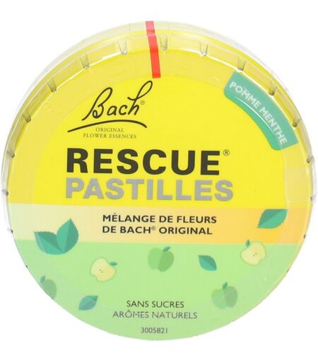 Complément alimentaire à utiliser dans le cadre d’une alimentation variée, équilibrée et d’un mode de vie sain.Délicieuses, pratiques et discrètes, les pastilles RESCUE® saveur pomme-menthe contiennent le mélange de 5 Fleurs de Bach Original. Idéales en réunion, examen, déplacement…Ces bonbons à sucer sont de véritables concentrés de sérénité grâce à un mélange de 5 fleurs de Bach Original : Rock rose, Impatiens, Clematis, Star of Bethlehem et Cherry plum. Sans sucre, ils sont dotés d'un délicieux arôme naturel de pomme-menthe. SANS ALCOOL. Rescue sous forme de pastilles à sucer.IngrédientsGélifiant (gomme arabique), édulcorants (sorbitol, maltitol, glycosides de stéviol issus de Stevia), eau, acidifiant (acid citrique), poudre de pomme, arômes naturels, huile de menthe poivrée, agent d'enrobage (cire d'abeille), colorant (curcumine), dilution acqueuse de fleurs d’Impatiens glandulifera Royle, Ornithogalum umbellatum L., Helianthemum nummularium (L.) Mill., Prunus cerasifera Ehrh., Clematis vitalba L.)Conseils d'utilisationBonbons à sucer jusqu'à 6 par jour.Précautions d'emploiUne consommation excessive peut avoir des effets laxatifs.À conserver dans un endroit frais et sec (< 25°).Poids net50 gAdresse du FabricantLaboratoire Famadem1 rue de la Lüjerneta98000 Monaco ...