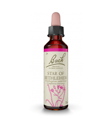 Les Fleurs de Bach sont des élixirs floraux qui ont été développées par le Dr Edward Bach de 1928 à 1936, on en compte 38 différentes, elles ont été classées en 7 groupes correspondants à une émotion :- La peur<br/ ><br/ >- Le doute<br/ ><br/ >- Le manque d'intérêt<br/ ><br/ >- La solitude<br/ ><br/ >- l'émotivité- La perte de confiance en soi, le désespoir<br/ ><br/ >- Le sentiment de préoccupation excessiveLes Fleurs de Bach ont la propriété de changer les émotions négatives en sensations positives, Star of Bethlehem ou Ornithogale en ombelle est indiquée en cas de difficulté à surmonter un choc physique ou psychologique (chagrin, bouleversement émotionnel).Star of Bethlehem aide au réconfort, et à la consolation des peines. ...