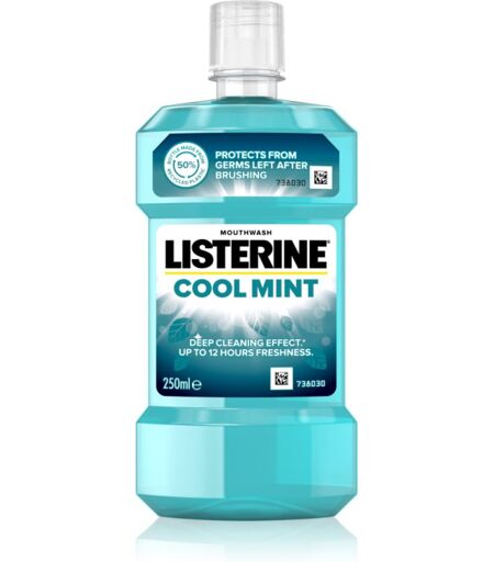 Listerine Cool Mint, 250 ml, Bains de bouche et sprays buccaux mixte, Le bain de bouche Listerine Cool Mint ne vous aide pas uniquement à rafraichir votre haleine, il agit également contre la plaque dentaire et aide à maintenir une bonne hygiène de la gencive et des dents. Le produit : protection contre la plaque dentaire maintient des gencives saines tue les bactéries assure une haleine fraîche Mode d’emploi : Après le brossage des dents, rincez la bouche avec le bain de bouche pendant la durée indiquée sur l’emballage, rincez ensuite. ...
