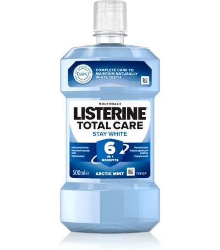 Listerine Stay White, 500 ml, Bains de bouche et sprays buccaux mixte, Le bain de bouche Listerine Stay White renforce l’effet des dentifrices blancheur et redonne de la luminosité à votre sourire. Le produit : aide à protéger contre les caries dentaires protection contre la plaque dentaire tue les bactéries maintient des gencives saines assure une haleine fraîche Mode d’emploi : Après le brossage des dents, rincez la bouche avec le bain de bouche pendant la durée indiquée sur l’emballage, rincez ensuite. ...
