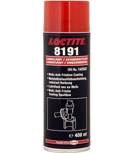Loctite 8191 - Lubrifiant sec à usage général - 400 ml LOCTITE au Prix TTC de 46.8 euros. Le lubrifiant sec Loctite 8191 améliore l'intensité des graisses et des huiles et réduit les frottements. Il protège les pièces métalliques contre la corrosion et évite l'accumulation de poussières ou d'impuretés avec un séchage par évaporation. Le lubrifiant sec Loctite est idéal pour le graissage de mât télescopique. ...