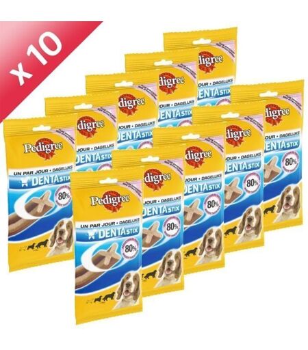 LOT de 10 - PEDIGREE - DENTASTIX Chien 180 g Friandises Pedigree Dentastix, soin dentaire idéal pour toutes les tailles de chiens - Texture spéciale et actifs nettoyants pour réduire visiblement la formation de tartre et de la plaque dentaire. ...