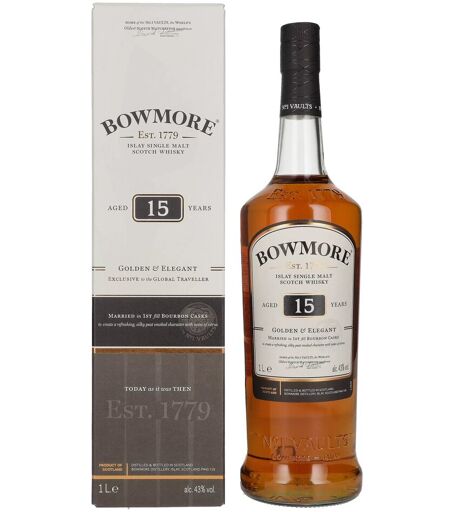 Bowmore 15 Years Old GOLDEN & ELEGANT Travel Exclusive 43% Vol. 1l en boîte cadeau