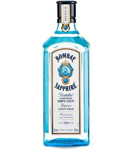 Gin produit à partir d'alcool de grain. Extraits de dix plantes. Recette originale de 1761. Processus d'élaboration unique par infusion à la vapeur : Bombay Sapphire n'est pas distillé avec les extraits de plantes. L'infusion est réalisée en faisant passer le spiritueux à l'état gazeux entre les extraits de plantes préalablement hachées de façon que les arômes les plus délicates soient absorbés. Pour ce processus les seuls deux modèles d'alambics en cuivre Carterhead existants qui ont été modifiés pour effectuer l'infusión à la vapeur sont utilisés. Le résultat final est réduit avec de l'eau du lac Vyrnwy. Le gin est faite dans la distillerie Greenall. Gin premium. ...