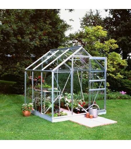 Halls - Serre Popular 66 en verre horticole avec base - 3.80 m², Couleur Aluminium