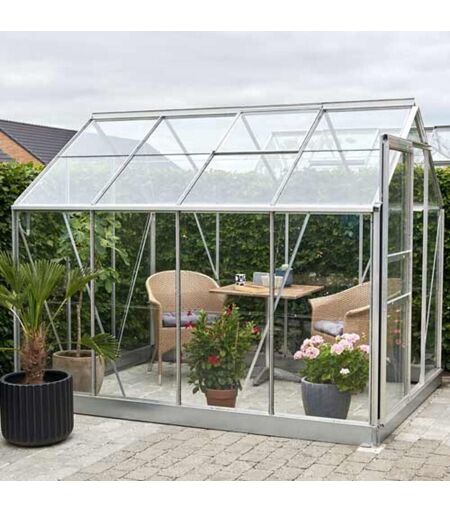 Halls - Serre en verre horticole Popular 86 avec base - 5 m², Couleur Silver