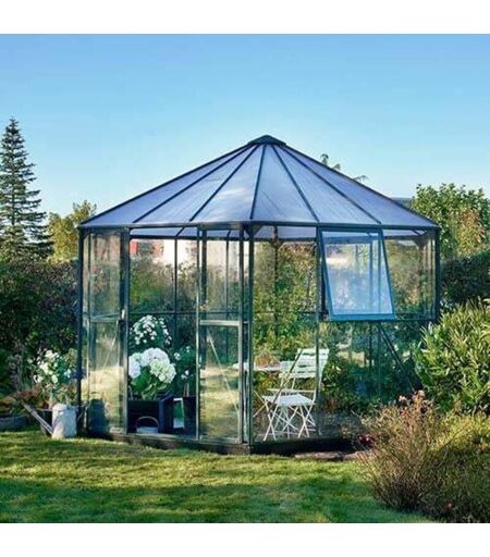 Halls - Serre en verre trempé Atrium avec base - 9 m², Couleur Vert