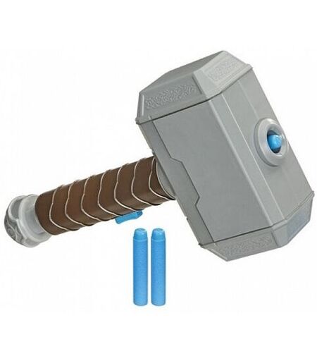 Le légendaire marteau de Thor renferme un secret Nerf, avec une réserve de missile en mousse pour une attaque encore plus flamboyante.. Arme en mousse et plastique factice avec fonction pistolet Nerf.. Dès 5 ans ...
