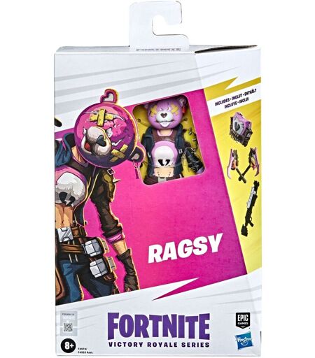 Figurine Fortnite Victory Royale Series 2022 Ragsy 15 cm. Figurine Fortnite Victory Royale Series 2022 Ragsy 15 cm. Rabiboche se jette du Battle Bus et plane vers la série Victory Royale ! Cette figurine articulée de 15 cm a la tenue du personnage populaire avec décos et détails du jeu. Elle est vendue avec 2 gourmandes (outils de collecte), un accessoire de dos sans coeur et une arme. On peut donner une pose de combat épique à la figurine Rabiboche ou la faire danser comme dans le jeu grâce à ses 20 points d'articulation ! ...