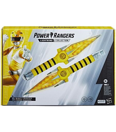 Réplique Power Rangers Lightning Collection Roleplay Premium 2022 Mighty Morphin Power Daggers. Réplique Power Rangers Lightning Collection Roleplay Premium 2022 Mighty Morphin Power Daggers. Ces dagues de pouvoir Mighty Morphin Power Rangers Lightning Collection de la Ranger Jaune sont des articles de cosplay premium de collection avec un design et une déco inspirés de la série télé. Elles sont vendues avec un socle pour les exposer et incluent des effets sonores et lumineux qui permettent d'illuminer les lames. Requiert 6 piles AAA de 1,5 V (non incluses). ...