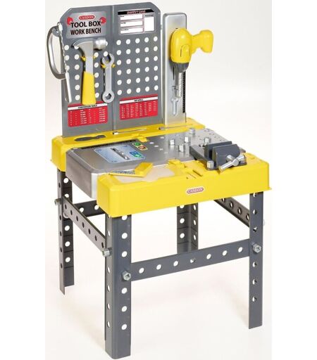 Les enfants seront ravis de jouer avec cette boîte à outils sur cet établi réaliste de Casdon. Indispensable pour tous les bricoleurs en herbe. Les outils sont soigneusement rangés à l¿intérieur de la boîte à outils très intelligemment conçue qui se transforme en établi. La boîte est pleine d¿outils, dont une perceuse, un étau, une scie circulaire, un marteau, un tournevis et bien plus (60 pièces au total). Ils se rangent tous parfaitement à l¿intérieur de la boîte à outils/établi intelligemment conçue.Caractéristiques du Produit - Conception unique 2 en 1, 77 cm de haut. - Facile à assembler. - Développe l'imagination. - Développe les comportements sociaux. - 60 pieces.Age: 3 ans +Dimensions: 13x39x20cm ...