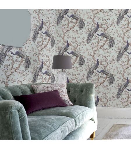 Laura Ashley - Papier peint intissé Paons Belvedere Duck Egg 1005 x 52cm Vert d'eau