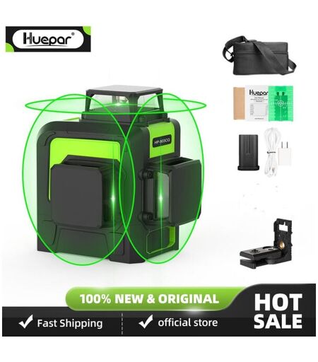 Huepar - 3x360 niveau laser 3D vert Cross Line Laser Auto Nivellement 147ft 45m grande puissance 903CG