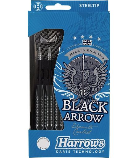 Les fléchettes Harrows Black Arrow à pointe d'acier, d'un poids de 22 grammes, ont un canon d'une longueur de 48 mm et d'un diamètre de 9,4 mm. Ces élégantes fléchettes Harrows en laiton à pointe d'acier sont fabriquées en noir avec un revêtement en ébonite et conviennent aux joueurs de tous âges et de tous niveaux. Les fléchettes Black Arrow ont un vol Graflite 7000 et un manche Alamo. ...