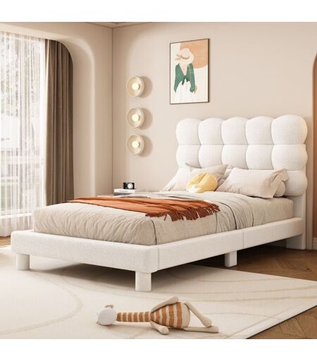 Tête de lit ajustable : La tête de lit est équipée d'une fonction de réglage en trois étapes, vous permettant d'ajuster facilement l'angle selon vos besoins personnels pour un confort personnalisé. Matériau de haute qualité: Fabriquée en laine d'agneau, la tête de lit offre un confort incomparable avec son aspect rond et sphérique et son toucher doux et délicat, ajoutant une touche de luxe à votre chambre. Structure robuste : Le lit est construit en MDF, offrant une structure solide et durable. Sa sensation de douceur confortable procure un soin chaleureux et un soutien fiable pour une expérience de sommeil optimale. Style polyvalent : Ce lit s'intègre facilement dans les chambres de tous les styles, apportant une sensation de luminosité et de générosité à la pièce, tout en améliorant l'esthétique globale de votre espace de vie. Assemblage facile : Des instructions détaillées et des pièces complètes sont fournies pour vous aider à terminer rapidement l'assemblage. Le plaisir de ...