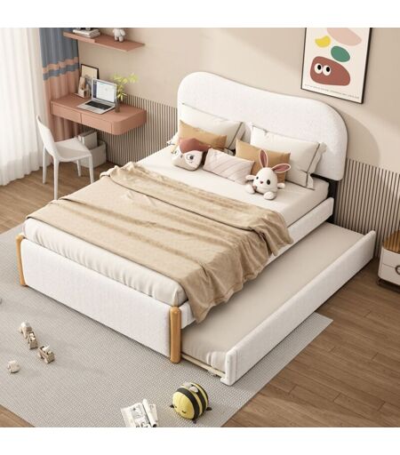 Dans Les Nuages - Lit gigogne 90x190 cm/140x200 cm, avec tête de lit incurvée, sommier à lattes en bois, cadre en métal, Canapé-lit capitonné en