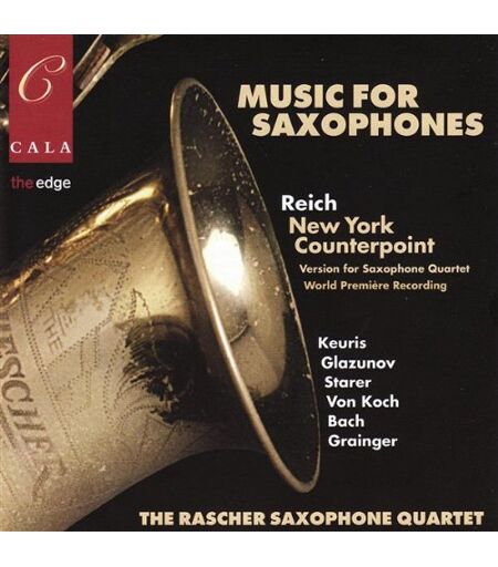 Binding : Audio CD, Label : Cala (in-akustik), Publisher : Cala (in-akustik), NumberOfDiscs : 1, NumberOfItems : 1, PackageQuantity : 1, medium : Audio CD, publicationDate : 2003-09-05, releaseDate : 2012-03-29, artists : The Rascher Saxophone Quartet, composers : Glasunow, Johann Sebastian Bach, Keuris, Reich, Koch ...