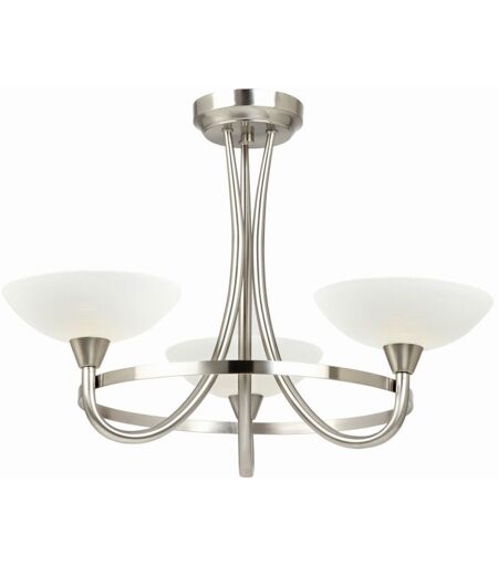 Endon Cagney - Plafonnier semi-encastré à 3 bras, chrome satiné, verre peint blanc avec motif de lignes pâles, G9