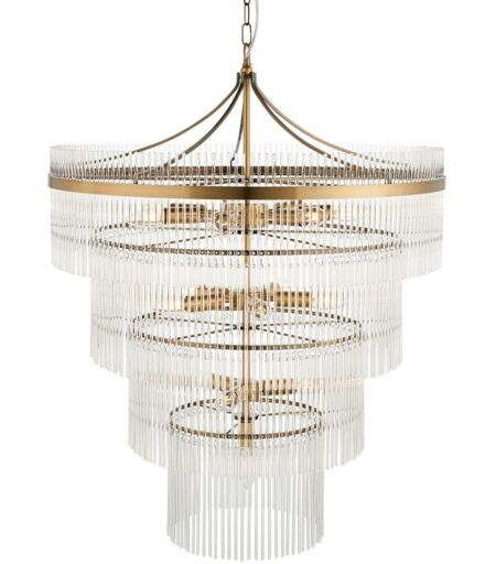Endon Marietta Plafonnier suspendu en laiton antique, verre transparent, 16 x E14