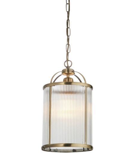 Endon Lambeth Ribbed Glass Suspension de plafond simple en laiton antique