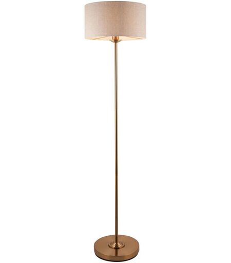 Endon Highclere Lampadaire avec abat-jour en laiton vintage, lin naturel, 1x E27