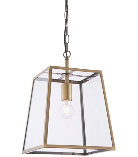 Endon - Lampe à Suspension Simple Plaque Laiton Antique Mat, Verre Clair