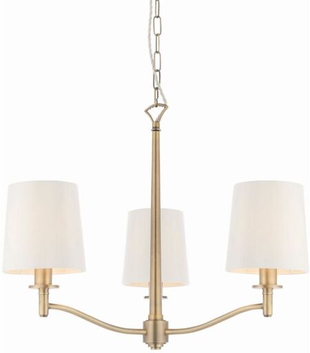 Endon Ortona - Luminaire suspendu à 3 bras multiples, laiton antique mat, faux soie blanc vintage, E14