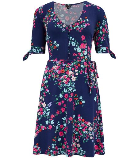 Pour Moi Pour Moi Navy Blue Floral Bella Fuller Bust Slinky Stretch Tie Sleeve Mini Dress Navy Blue Floral EU 42 (UK 14)