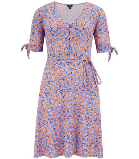 Pour Moi Pour Moi Pink Multi Floral Bella Fuller Bust Slinky Stretch Tie Sleeve Mini Dress Pink Multi Floral EU 40 (UK 12)
