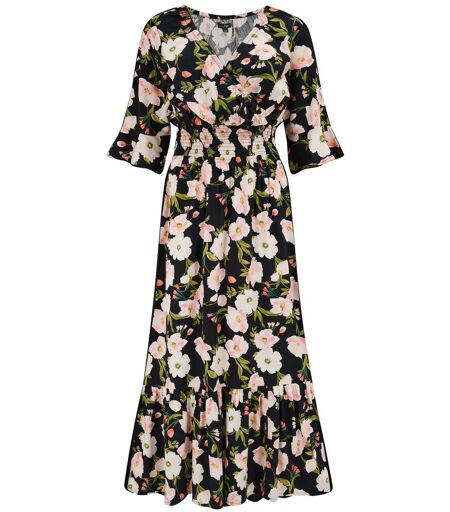 Pour Moi Pour Moi Black Multi Floral Carmen Fuller Bust Elasticated Neckline Midaxi Dress Black Multi Floral EU 40 (UK 12)
