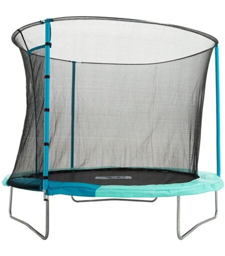 TRAMPOLINE TP TOYS ROND D244 CM AVEC OUVERTURE IGLOO REF 59P Ce trampoline est doté de nombreuses caractéristiques de conception, dont certaines se trouvent généralement sur nos trampolines plus haut de gamme. L'enceinte sur mesure et le rembourrage supplémentaire du cadre offrent une protection totale. L'enceinte est équipée du système breveté IGLOO™ de TP, qui élimine la nécessité d'ouvrir et de fermer constamment une fermeture éclair traditionnelle. Caractéristiques Dimensions produit monté : L.244 x l.244 x H.240 cm Surface au sol : 5,95 m2 Poids du produit monté : 31 kg Équipements : porte igloo / kit d'ancrage Nombre de ressorts : 42 Ressort -> Longueur : 135 mm / diamètre : 30 mm Couleurs : bleu - gris - noir Matériaux : Métal - Textile - Plastique Traitement du métal : galvanisé Bon à savoir Accès au trampoline par notre porte Igloo, unique au monde (système breveté) Porte IGLOO : plus de sécurité pour votre enfant Nombre de ressorts : 42 Tapis traité anti UV Ressort -> ...