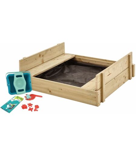 TP Toys Bac à sable bois fsc® avec bancs intégrés et kit de jeux explorateur