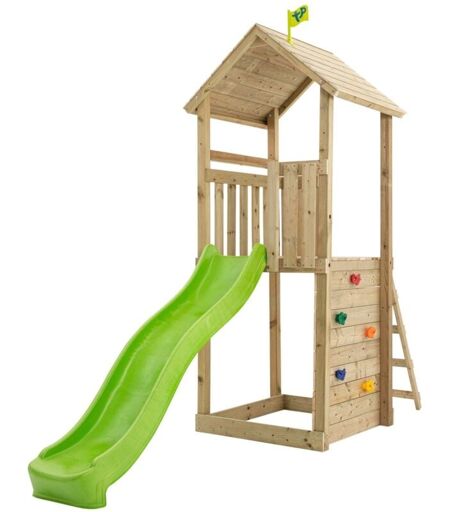 Tp Toys - Tour de jeux skywood plateforme - toboggan - bac à sable - mur d'escalade - bois fsc® h270 cm
