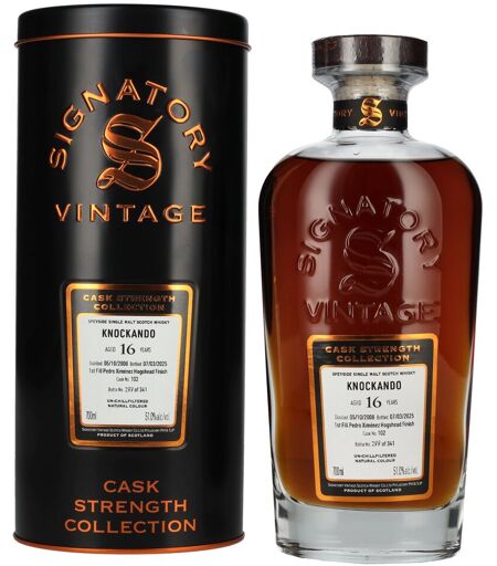 Signatory Vintage KNOCKANDO 16 Years Old 1st Fill PX Hogshead Cask Strength #102 2008 51% Vol. 0,7l in Tinbox