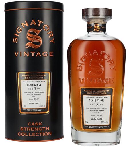 Signatory Vintage BLAIR ATHOL 13 Years Old 1st Fill Ruby Port Cask Strength #1 2011 57,7% Vol. 0,7l in Tinbox
