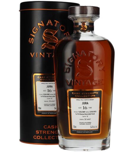 Signatory Vintage JURA 16 Years Old 1st Fill Oloroso Sherry Butt Cask Strength #16 2009 54,4% Vol. 0,7l in Tinbox