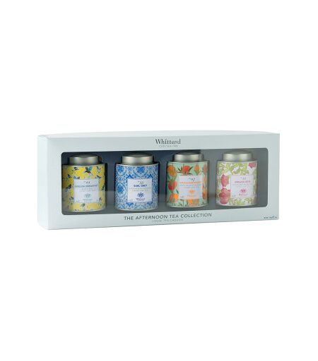 L'histoire raconte que la tradition du thé de l'après-midi a commencé avec Anna, duchesse de Bedford, au début du 19e siècle. La duchesse connaissait bien les thés à choisir et elle aurait certainement approuvé les mini caddies de Whittard remplis des classiques English Breakfast et Earl Grey, ainsi que des floraux English Rose et Mango & Bergamot. Commencez à couper vos sandwichs au concombre et faites chauffer la bouilloire !- Thés proposés : English Breakfast, Earl Grey, English Rose et Mango & Bergamot- Types de thé inclus : 3 x thés noirs et 1 x thé vert- Nombre de tasses (à raison de 2 g par tasse) : 50 g d'English Breakfast = 25 tasses ; 40 g d'Earl Grey = 20 tasses ; 40 g d'English Rose = 20 tasses ; 40 g de Mango & Bergamot = 20 tasses - soit un grand total de 85 délicieuses infusions !- Suggestion de consommation : à déguster chaud.Ingrédients : English Breakfast : thé noir.Earl Grey : thé noir avec arôme.English Rose : thé noir, bourgeons et pétales de rose 6%, arôme.Mango & Bergamot : thé vert avec arôme.Convient aux végétariens et aux végans.Conservation : conserver dans un endroit frais et sec, à l'abri de la lumière et des odeurs fortes. ...