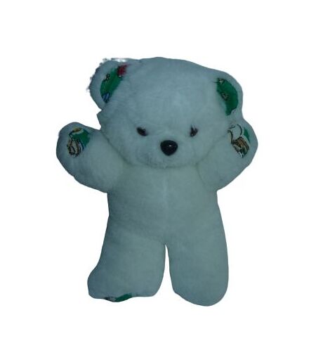 Doudou peluche style vintage ours 26 cm environ, blanc motifs. Etat : Excellent état (étiquette de la marque coupée) ...