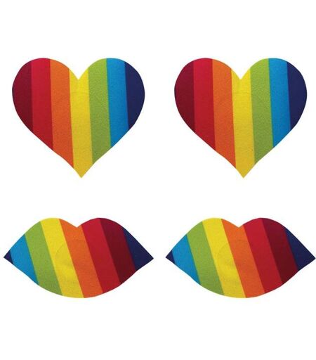 Les Caches-Tétons Nipplicious Rainbow Pasties mettront de la couleur sur votre corps et dans votre intimité ! Une paire en forme de coeurs, l'autre paire en forme de bouches pour sublimer votre poitrine... Le tout grâce aux couleurs éclatantes de l'arc-en-ciel ! Selon vos envies, recouvrez vos tétons avec l'une de ces deux magnifiques paires de caches-tétons. Ils égayeront vos moments intimes tout en vous parant d'un look absolument irrésistible ! Vous atteindrez sûrement plus vite le septième ciel en portant les couleurs de l'arc-en-ciel... ...
