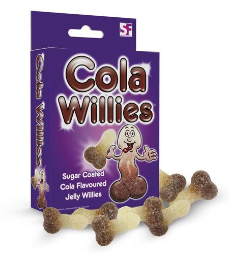 Nous sommes les Bonbons Pénis Cola Willies de Spencer & Fleetwood, LE cadeau drôle et sexy que vous devez offrir ! Nous sommes 120 grammes de bonbons en forme de pénis "Cola Willies", de généreux bonbons au cola et recouverts de sucre. Au premier regard, nous vous rappellerons sans aucun doute les fameux bonbons en forme de bouteilles de cola, mais regardez de plus près, nous sommes en fait des pénis ! Ingrédients : Sirop de Glucose, Sucre, Gélatine, Acide citrique, Arômes, Colorants (E150c) ...