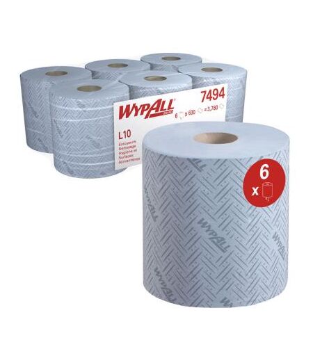 Wypall Papier d'essuyage L10 - simple épaisseur - 525 feuilles - 185 mm - bleu - carton 6 x 525 feuilles