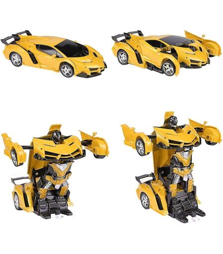 Voiture Télécommandée Rc Transformer Robot Car 360 Rotation Braking Rechargeable Kids Toy Car (Jaune)