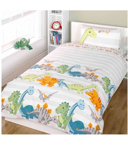 ARGOFIELD Parure de lit Dinosaures blanche 120 cm x 150 cm