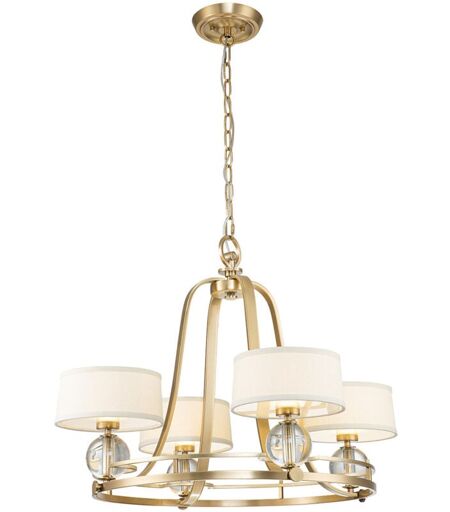 Elstead Quoizel Gotham Lustre à bras multiples avec abat-jour en laiton brossé Finition : Laiton brossé Matériau : acier, verre, abat-jour crème Hauteur : 57,2 cm Hauteur minimale : 66 cm Hauteur maximale : 187,9 cm Largeur : 77,5 cm Diamètre : 77,5 cm Type de lampe : G9 Nombre de lampes : 4 Ampoule incluse : Oui Puissance (max): 3.5W ...