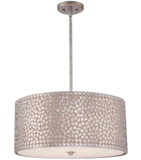 Description Cette collection présente des copeaux de métal ressemblant à des confettis entourant un abat-jour intérieur en lin crème. La finition Old Silver et le diffuseur givré complètent le design de cette gamme funky-chic. Détails • Type de produit : lampe suspendue • Hauteur en cm : 26,7 • Ø en cm : 55,9 • min Hauteur en cm : 48.3 • Hauteur max en cm : 124.5 • Matériau : métal, lin, diffuseur givré • Finition : argent antique • Nombre de cadres : 4 • Puissance maximale : 100 W • Douille : E27 • Ampoule incluse : non • Tension : 220-240V 50hz • Classe de protection : classe I • Pôles fournis : Livré avec 2 x 150 mm & 2 x tiges de 300 mm. • Hauteur du plateau de plafond en cm : 2,5 • Largeur/diamètre du plateau de plafond en cm : 14 ...