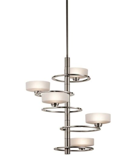 Description Comme le soleil attire les planètes, la collection LED Aleeka utilise l'inspiration céleste pour créer sa propre attraction gravitationnelle. Des anneaux concentriques s'articulent autour d'une colonne centrale cylindrique élégante et élancée. Les globes ovales semblent flotter presque en apesanteur au-dessus, et la finition Classic Pewter ajoute une touche douce et moderne. Détails • Type de produit : Lustre • hauteur en cm : 78.7 • Ø en cm : 71.8 • hauteur min en cm : 92.9 • hauteur max en cm : 182.9 • Matière : Aluminium, Verre • Fini : Étain classique • Nombre de douilles : 5 • Puissance maximale : 3,5 W • Douille : G9 • Ampoule DEL incluse : oui • Lumens DEL : 1620 Lm • Température de couleur LED : 3000K • Tension : 220-240V 50hz • Classe de protection : Classe I • Pôles fournis : Fourni avec 2 tiges de 150 mm et 2 x 300 mm. • Largeur du plateau de plafond/ diamètre en cm : 12,7 ...